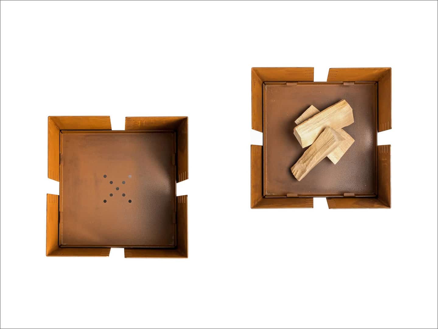 Die Feuerstelle Fidibus wird aus 3mm dickem wetterfestem Stahl (ähnlich wie Cortenstahl) gefertigt. So kan die Feuerstelle Fidibus –