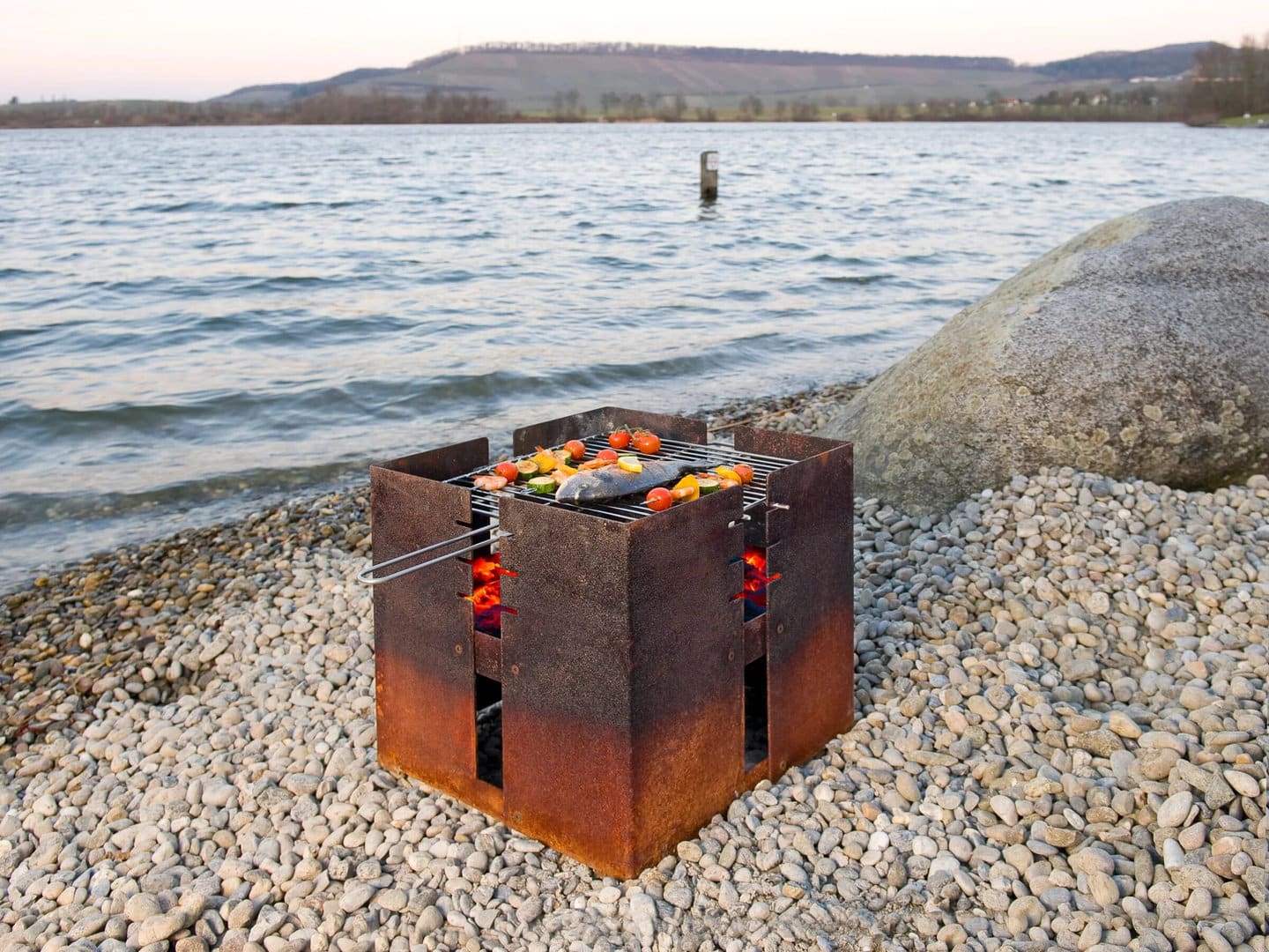 Charakter und Persönlichkeit verleiht. Für die Feuerstelle Fidibus gibt es optional ein Grillrost sowie einen Sockel.