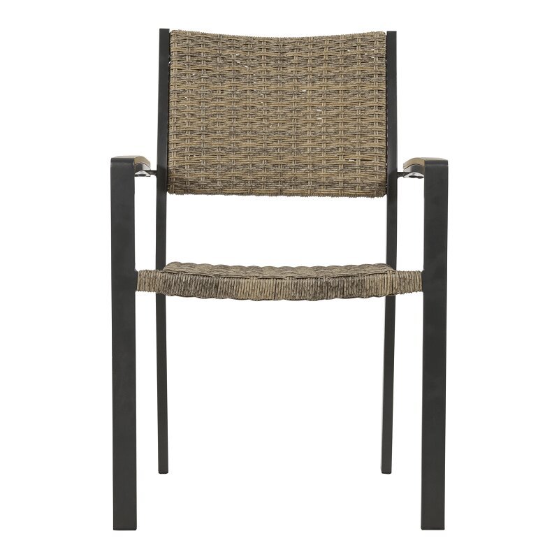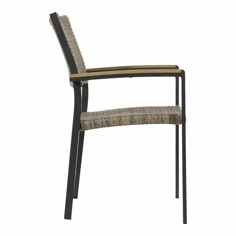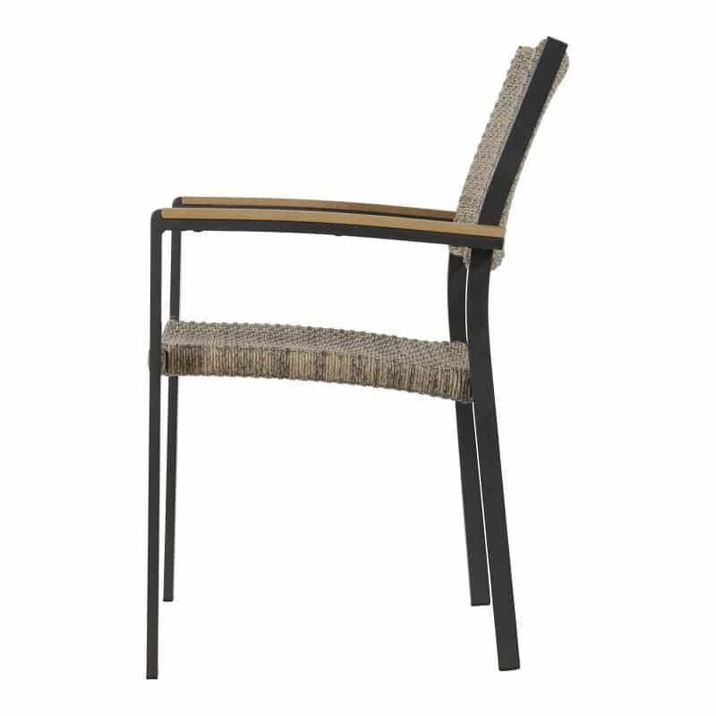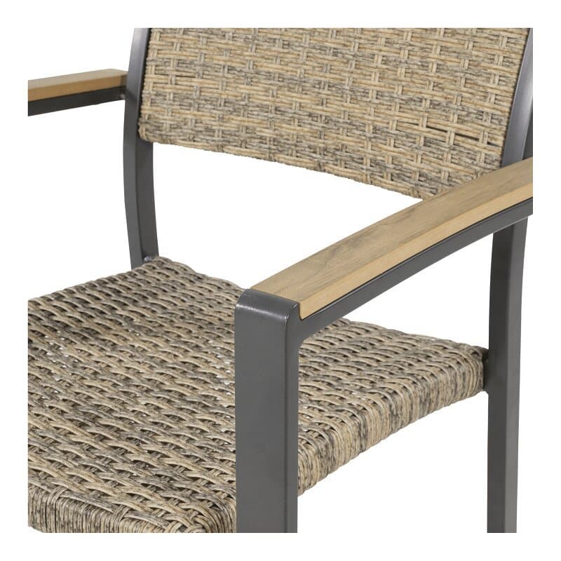 Der Stapelstuhl Arezzo Geflecht ist die perfekte Ergänzung für Ihren Garten oder Balkon. Hergestellt aus hochwertigem Polyrattan-Geflecht mit einer Dicke von 6mm x 2mm, bietet dieser Stuhl nicht nur Komfort, sondern auch Langlebigkeit. Der Aluminiumrahmen ist anthrazit pulverbeschichtet und sorgt für Stabilität und Wetterbeständigkeit. Die Armlehne aus Polywood in teaklook verleiht dem Stuhl eine elegante Note. Mit einer Sitzhöhe von ca. 430mm und einer Armlehnhöhe von ca. 630mm bietet der Stapelstuhl Arezzo Geflecht Komfort für lange Stunden im Freien. Mit einer max. Belastbarkeit von 100kg und den Maßen 570mm * 620mm * 870mm ist dieser Stuhl nicht nur praktisch, sondern auch platzsparend stapelbar. Gönnen Sie sich eine Auszeit und entspannen Sie in diesem stilvollen Stapelstuhl Arezzo Geflecht.